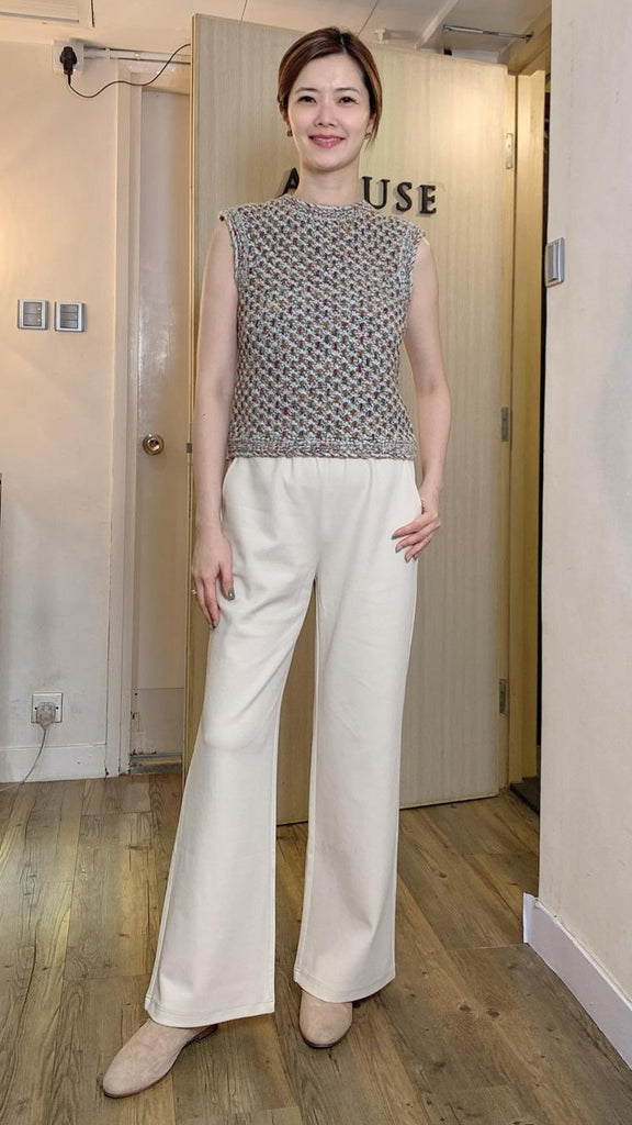 Festive orange red mid collar knitted cashmere blend sleeveless top