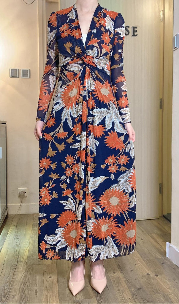 Stunning orange red floral maxi dress with front slit